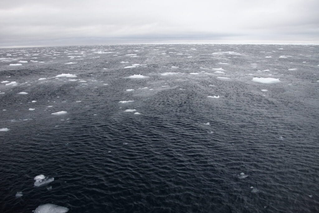 Ostrzeżenie przez zbliżaniem się do granicy paku lodowego może stanowić pojawienie się poprzedzających pak, formacji lodowych, jak igłoledź – kolce lub płytki lodu zawieszone w wodzie lub śryż – stadium zamarzania, gdy kolce i płytki łączą się, tworząc rodzaj galaretowatej substancji. Śryż odbija niewiele światła, powodując oleisty lub matowy wygląd morza. Taki sygnał zbliżania się do granicy paku, otrzymaliśmy na jachcie Ocean B, 20 września 2021 r., osiągając 82º32,75’N w żegludze na północ nad Nordaustlandet.